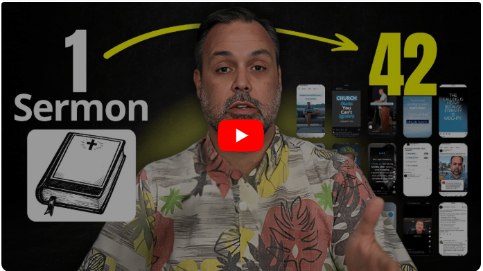 REACHRIGHT shares "How to Turn One Sermon into 42 Pieces of Content" (16-minute watch), outlining a practical system to maximize a message's online reach with just two extra hours of work. The host breaks down eight content tiers—utilizing tools like YouTube Shorts, AI transcript repurposing, and carousel posts—that can exponentially increase weekly views. The video is a valuable resource for pastors wanting to transform their single Sunday message into a week-long digital engagement strategy and includes a a free download of 77 AI prompts as a bonus resource.